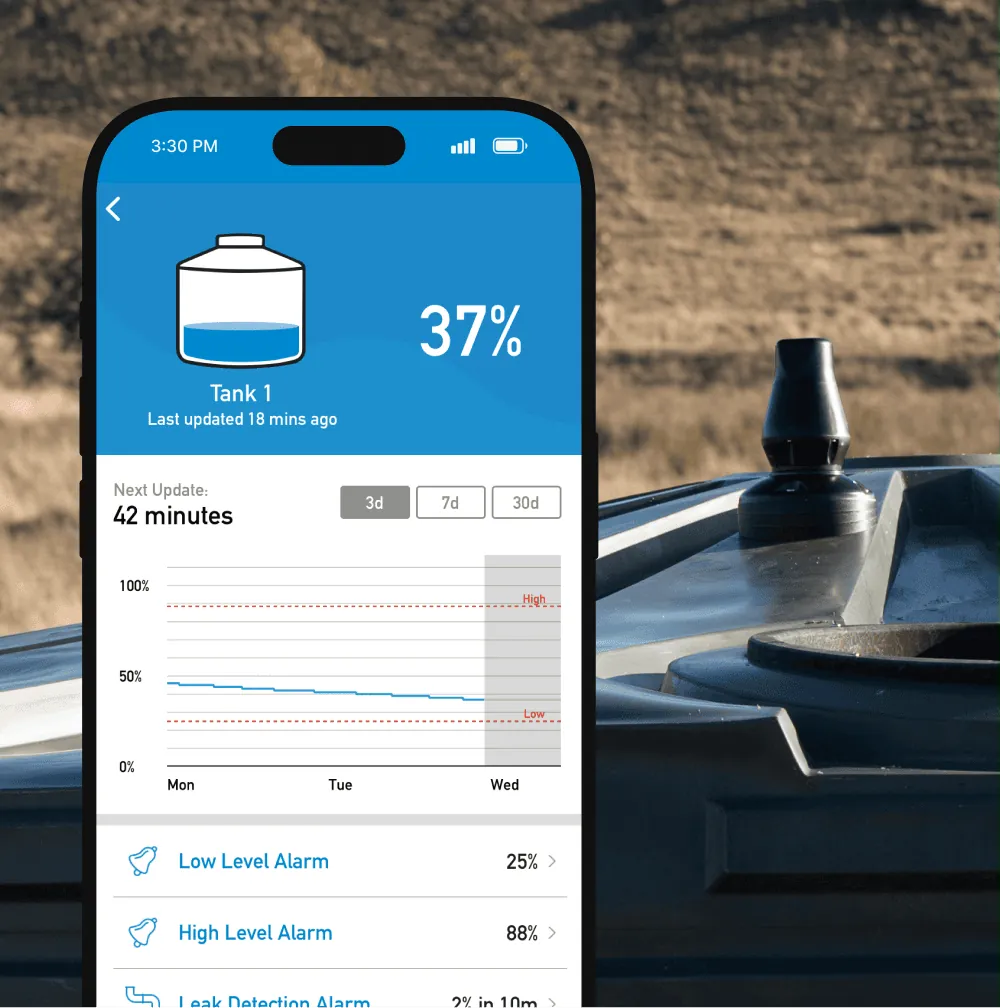 We know how busy you are on the farm, so we've designed HiLo to be easy to install and use. You don't need to constantly check the app. When there’s a problem, HiLo automatically sends you a text, email, and in-app notification with alerts for Leaks and High/Low tank levels.